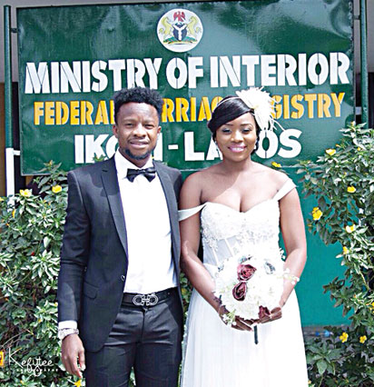 Onazi, who plays for Lazio in the Italian serie A, and Sandra tied the knot at the marriage registry in Ikoyi.